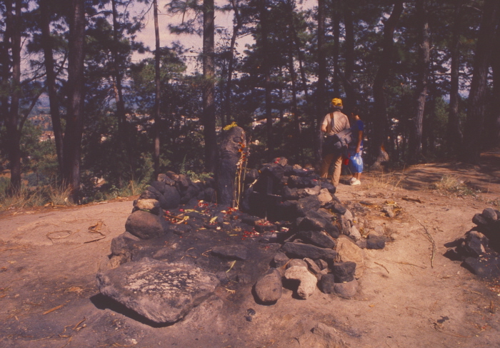 A Mayan shrine on a Chichicastenago ridgetop. When we arrived, embers of an offering were still smoldering.